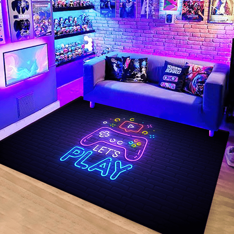 1pc Neon Video Game Floor Mat; Large Game Area Rug; Gamer Carpet; Game Printed Living Room Mat Bedroom Mat