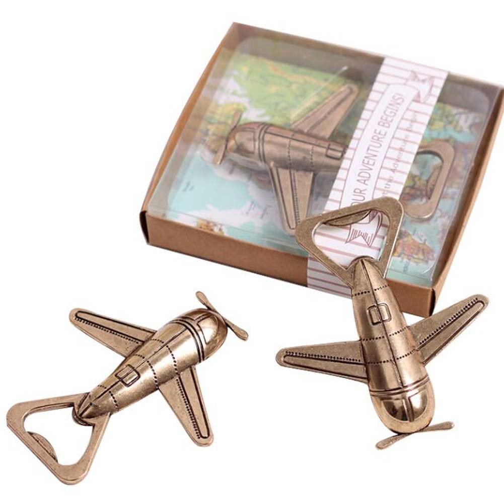 2 Pcs Retro Antique Bronze Aircraft Bottle Opener Metal Airplane Beer Bottle Opener Wedding Favours
