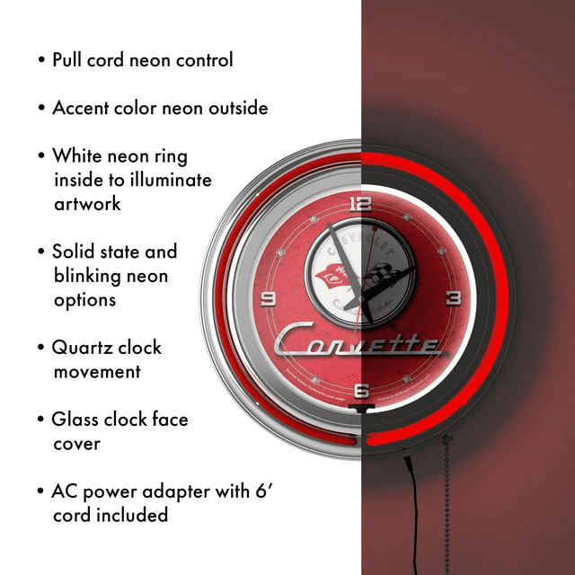 Corvette C1 Neon Clock - 14 inch Diameter - Red Corvette C1 Neon Clock - 14 inch Diameter - Red Corvette C1 Neon Clock - 14 inch Diameter - Red