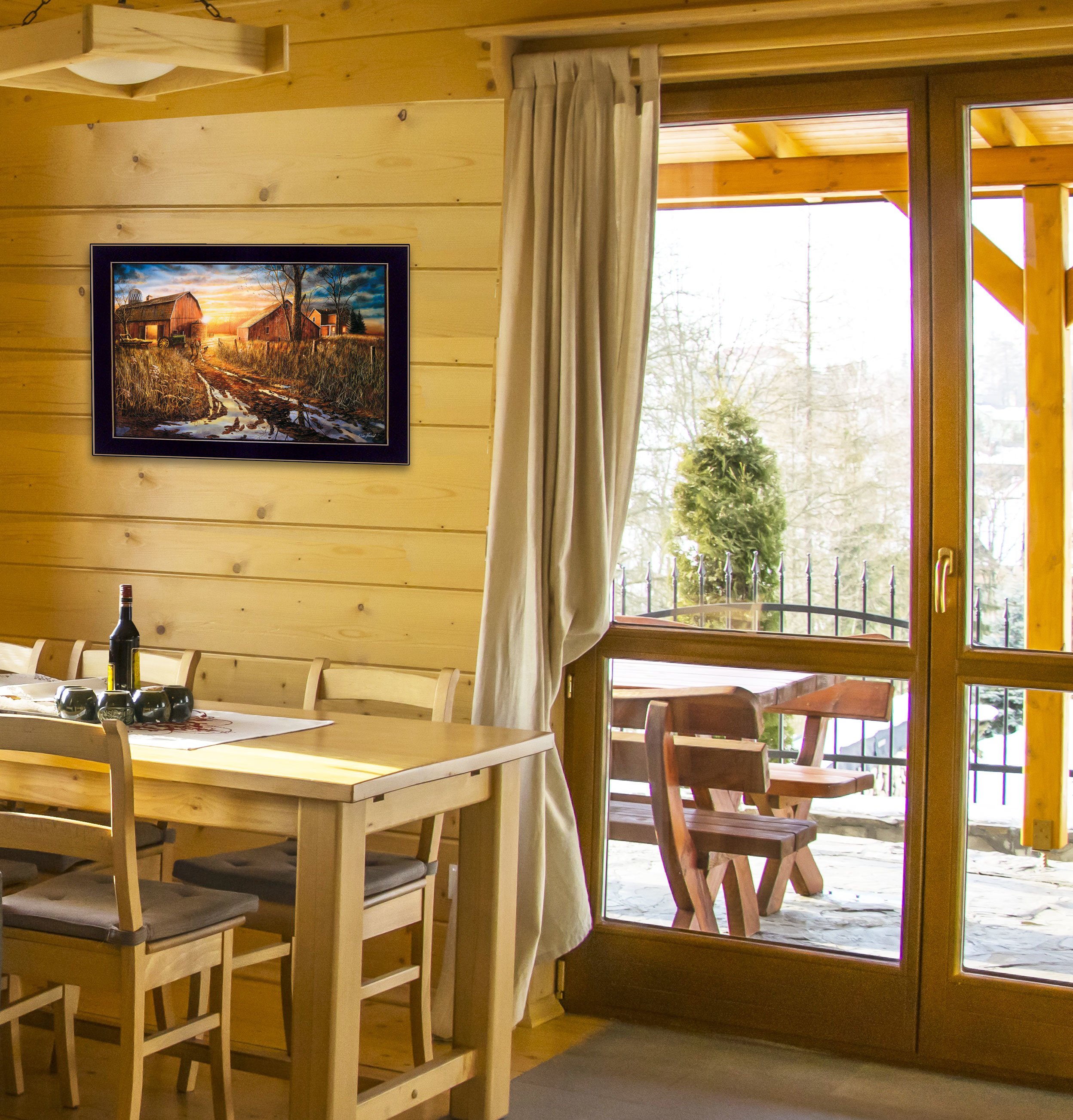 Days not Forgotten 20x14 framed print in a decorative black frame by artisan Jim Hansen•Women Owned (WBE)•Textured Artwork with a 'rolled on' acid free acrylic coating to create a canvas painting effect. No glass is necessary.•UV protectant coating protects artwork from fading.•Arrives Ready to Hang