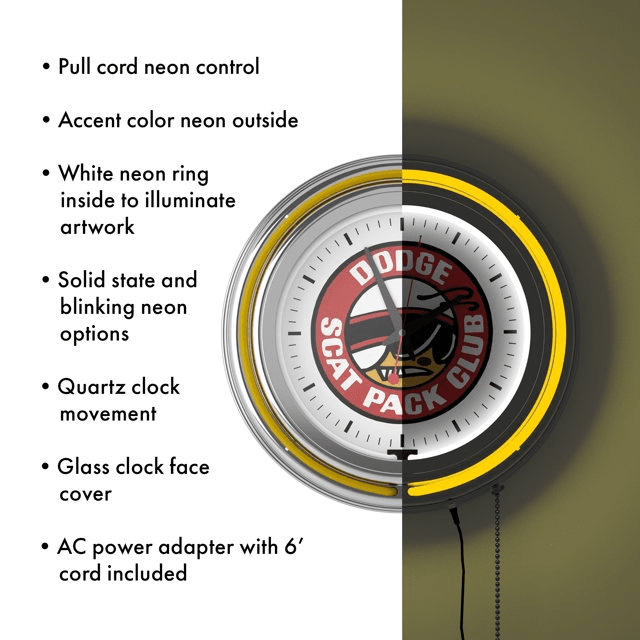 Dodge Chrome Double Rung Neon Clock - Scat Pack Dodge Chrome Double Rung Neon Clock - Scat Pack Dodge Chrome Double Rung Neon Clock - Scat Pack