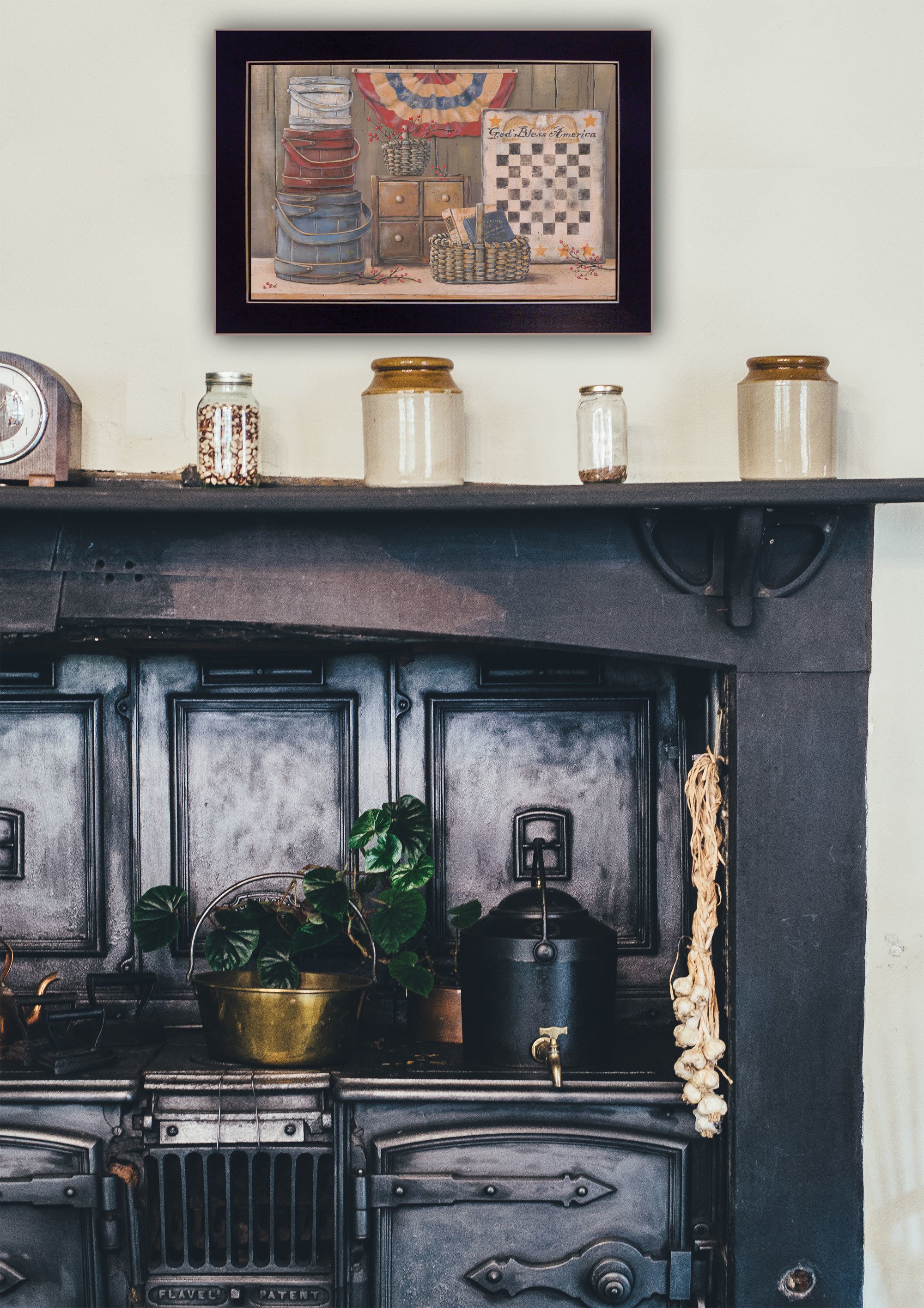 "God Bless America" By Pam Britton, Printed Wall Art, Ready To Hang Framed Poster, Black Frame