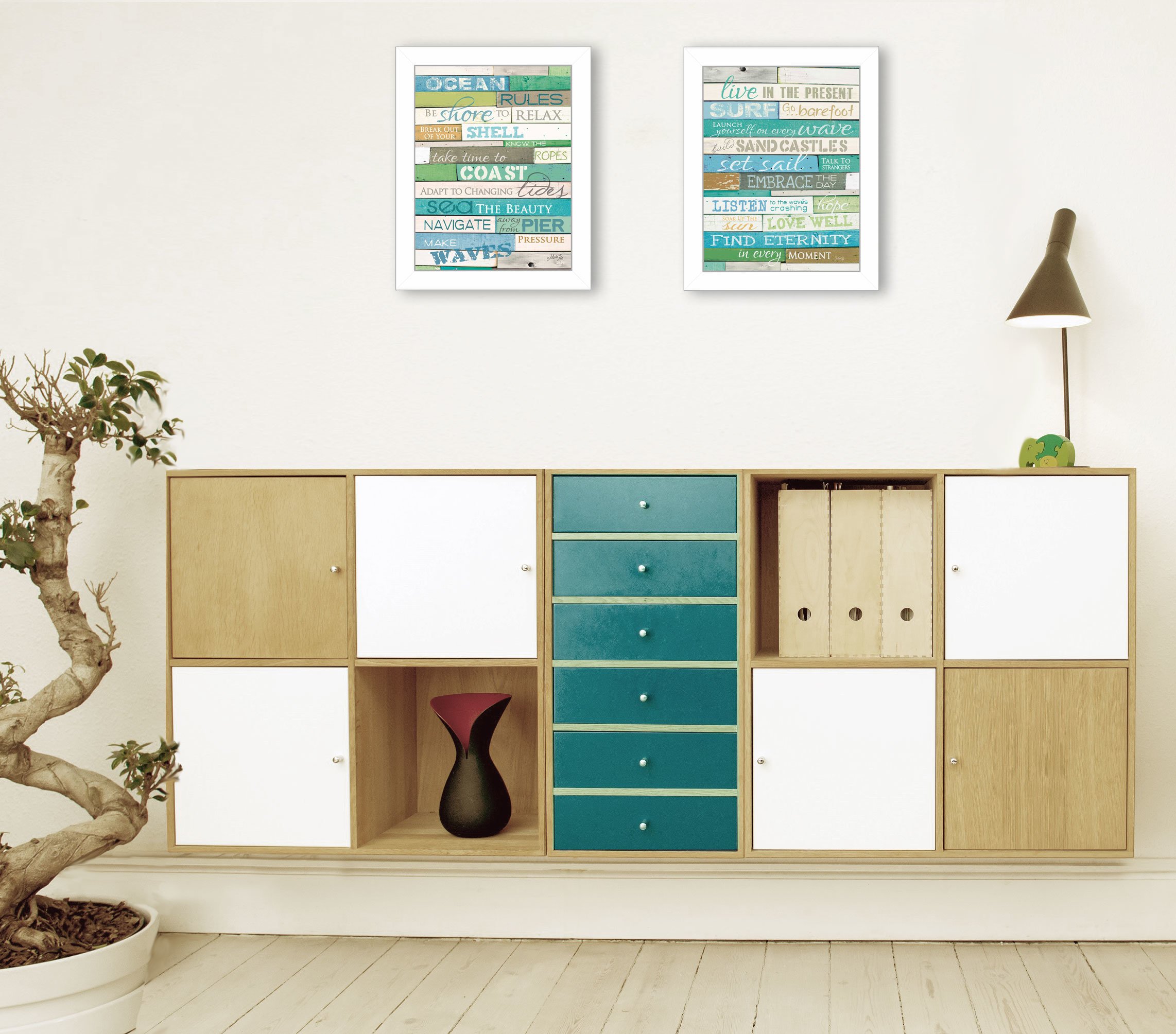 Live in the Present -2- 14 x 18 decorative white framed prints reminding us to Live in the Present/ Ocean; seashore prints. Go barefoot, build sandcastles, laugh and enjoy your time in the Present. Each framed print arrives ready to hang. •Women Owned (WBE)•Textured Artwork with a 'rolled on' acid free acrylic coating to create a canvas painting effect. No glass is necessary.•UV protectant coating protects artwork from fading.•Arrives Ready to Hang