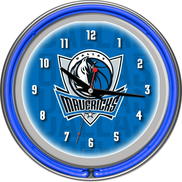 NBA Chrome Double Rung Neon Clock - City - Dallas Mavericks