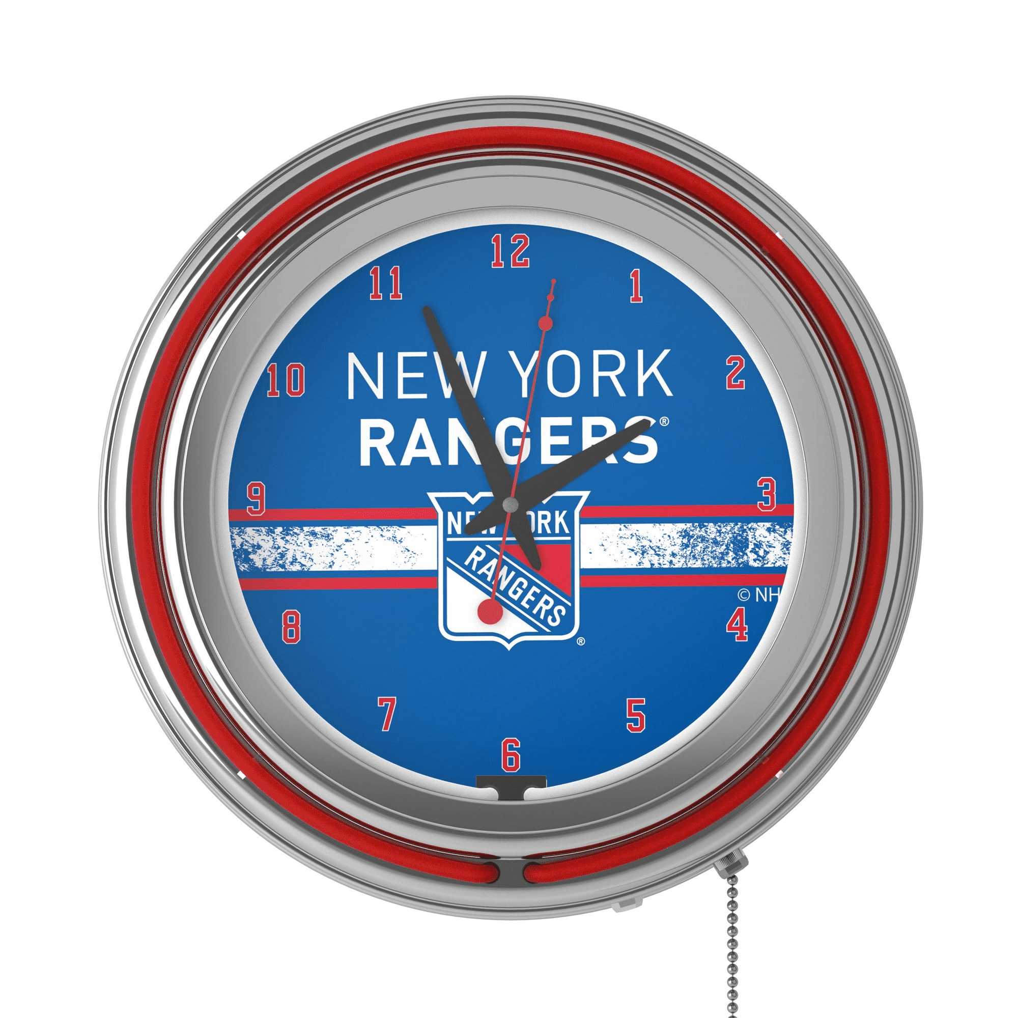 NHL Chrome Double Rung Neon Clock - New York Rangers� NHL Chrome Double Rung Neon Clock - New York Rangers� NHL Chrome Double Rung Neon Clock - New York Rangers�