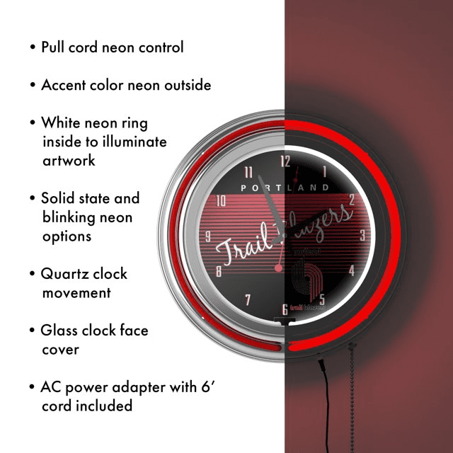Portland Trail Blazers Hardwood Classic NBA Chrome Neon Clock Portland Trail Blazers Hardwood Classic NBA Chrome Neon Clock Portland Trail Blazers Hardwood Classic NBA Chrome Neon Clock