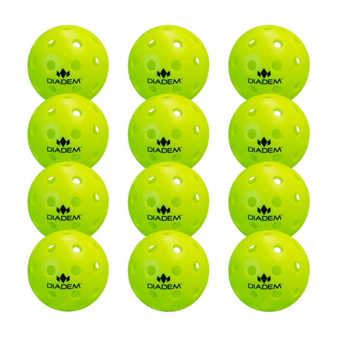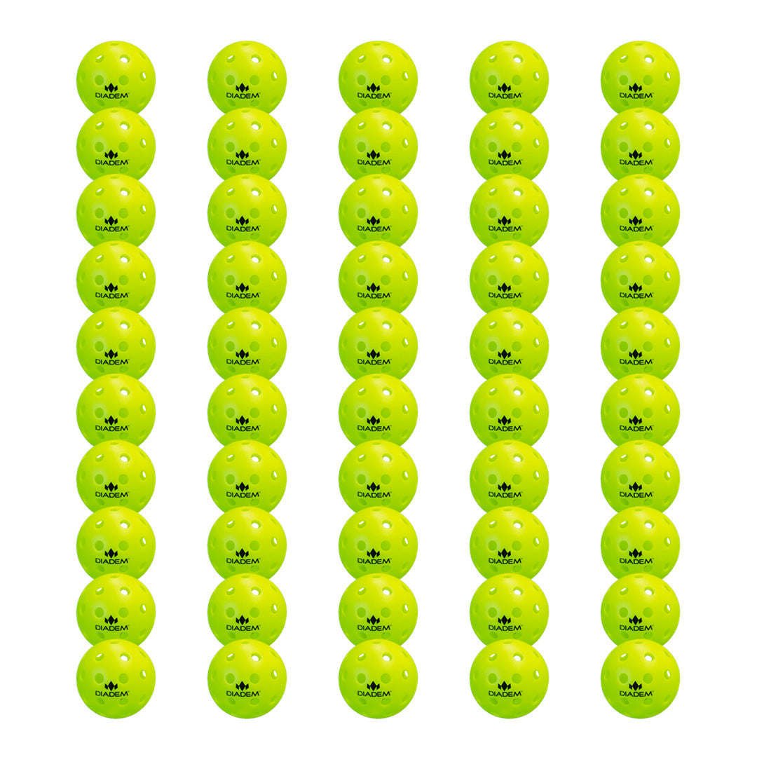 Introducing our Outdoor Premier 40 Pickleballs, the ultimate choice for pickleball enthusiasts seeking a true bounce and exceptional durability. Crafted with precision using high-quality PET plastic, these balls are specifically designed to elevate your training sessions and withstand the rigors of outdoor play. With our proprietary formula and innovative laser melt construction, these pickleballs outperform the competition, offering up to three times the lifespan.When it comes to training, durability is crucial, and our Outdoor Premier 40 Pickleballs excel in this aspect. Thanks to their superior construction and advanced materials, they are built to endure countless games without compromising their performance. Whether you're engaging in intense rallies or practicing your shots, these pickleballs will maintain their shape, resilience, and responsiveness, ensuring a consistent and enjoyable playing experience.One of the standout features of our Outdoor Premier 40 Pickleballs is their vibrant neon yellow color. This eye-catching hue enhances visibility, making it easier for players to track the ball's trajectory during fast-paced rallies. No more straining your eyes to spot the ball in challenging lighting conditions or against different backgrounds. With our neon yellow pickleballs, you'll always have optimal visibility, allowing you to focus on your gameplay and react swiftly to each shot.To cater to different needs and preferences, our Outdoor Premier 40 Pickleballs are available in convenient sets of 3, 12, and 50. Whether you're a casual player looking for a few extra balls or a pickleball club seeking a bulk supply, we have you covered. Each set is carefully packaged to ensure the balls arrive in pristine condition, ready for immediate use.When you choose our Outdoor Premier 40 Pickleballs, you're investing in a premium product that delivers outstanding performance and value. Experience the joy of playing with pickleballs that offer a true bounce, exceptional durability, and easy visibility. Elevate your game and enjoy hours of fun on the court with our high-quality pickleballs designed to meet the demands of outdoor play.Please note that our Outdoor Premier 40 Pickleballs are specifically designed for outdoor use. For indoor play, we offer a separate range of pickleballs tailored to provide optimal performance on indoor courts.