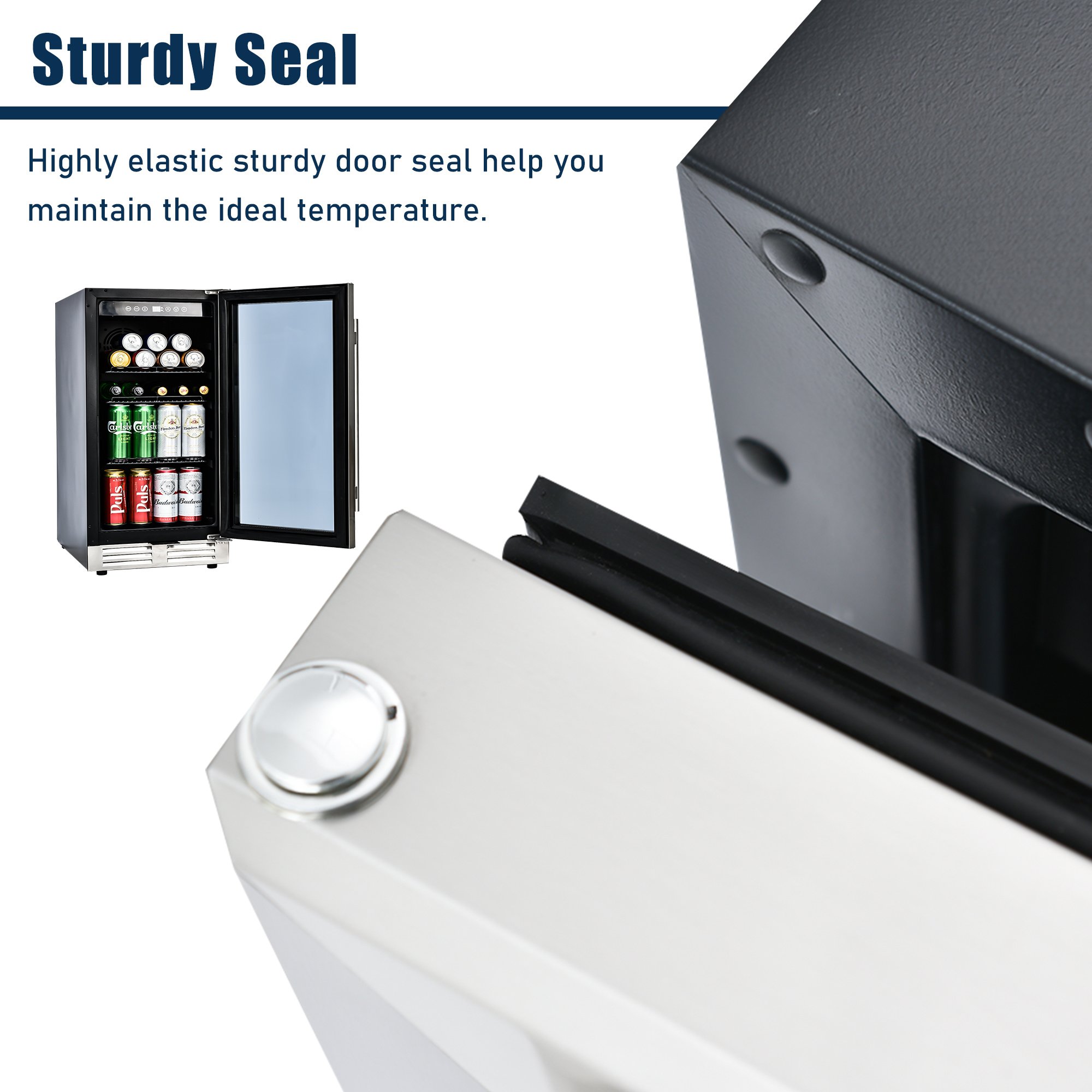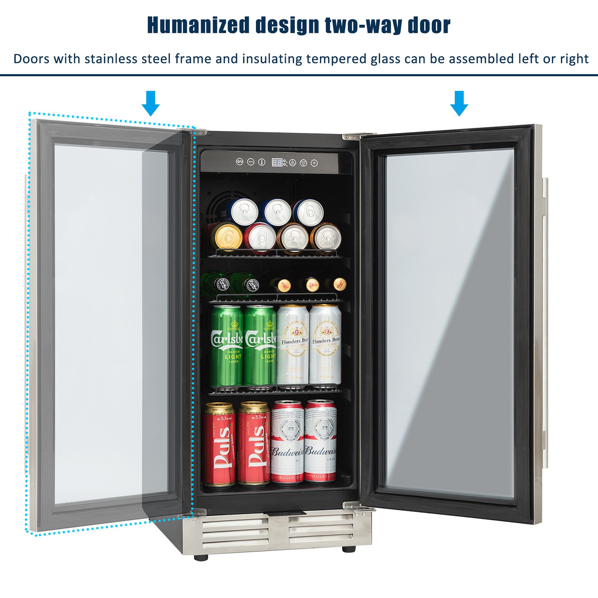 1.1. Versatile Built-in & Freestanding Design: Enjoy cold drinks anytime, anywhere, with this 15-inch mini refrigerator that doubles as a wine cooler. Whether in your living room, kitchen, bar, or office, it seamlessly blends with any furniture setup.