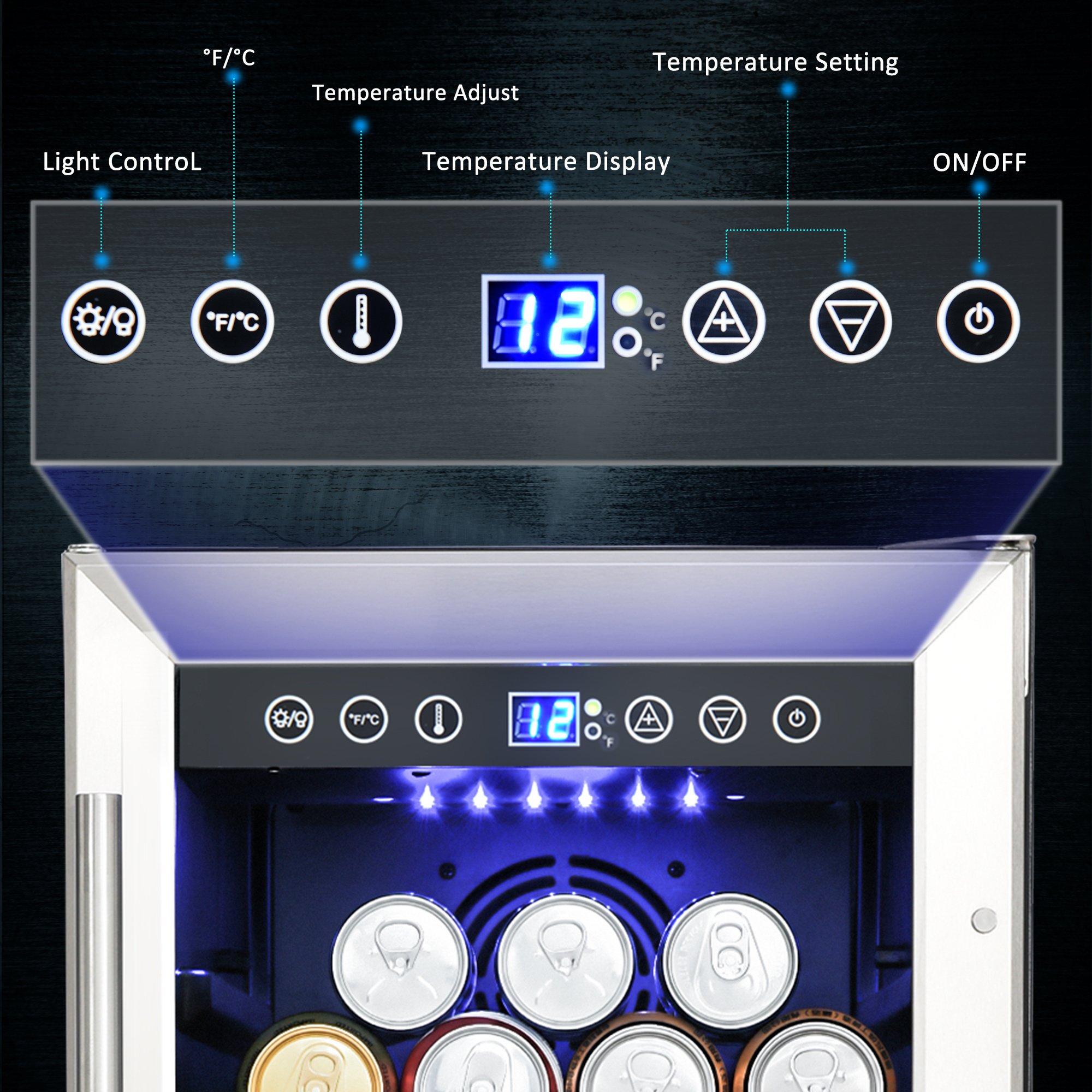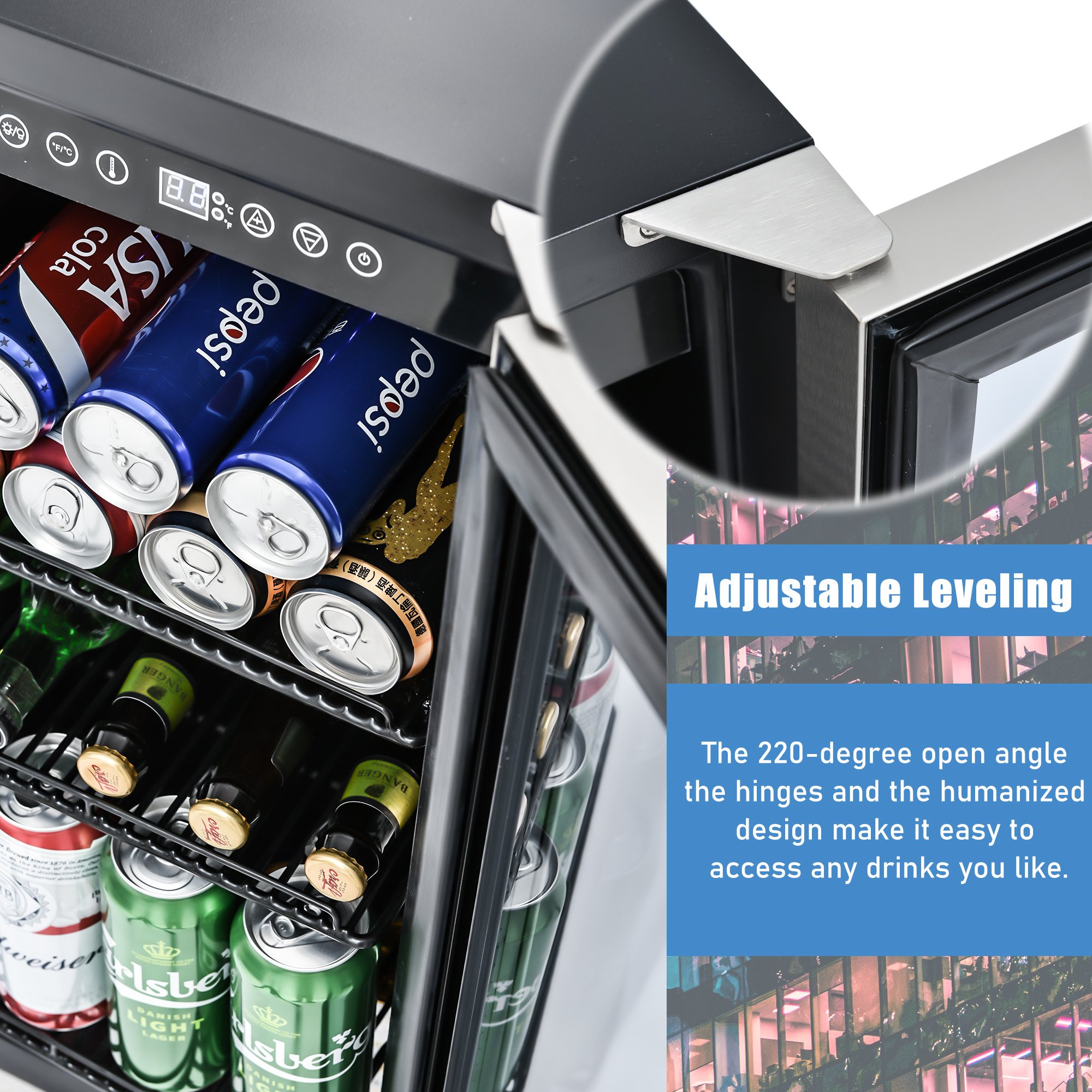 4.4. Elegant Display: Admire the stylish appearance of this beverage refrigerator with its stainless steel framed double tempered glass door. Not only does it maintain the interior temperature, but it also prevents fogging, giving you a clear view of your drinks.