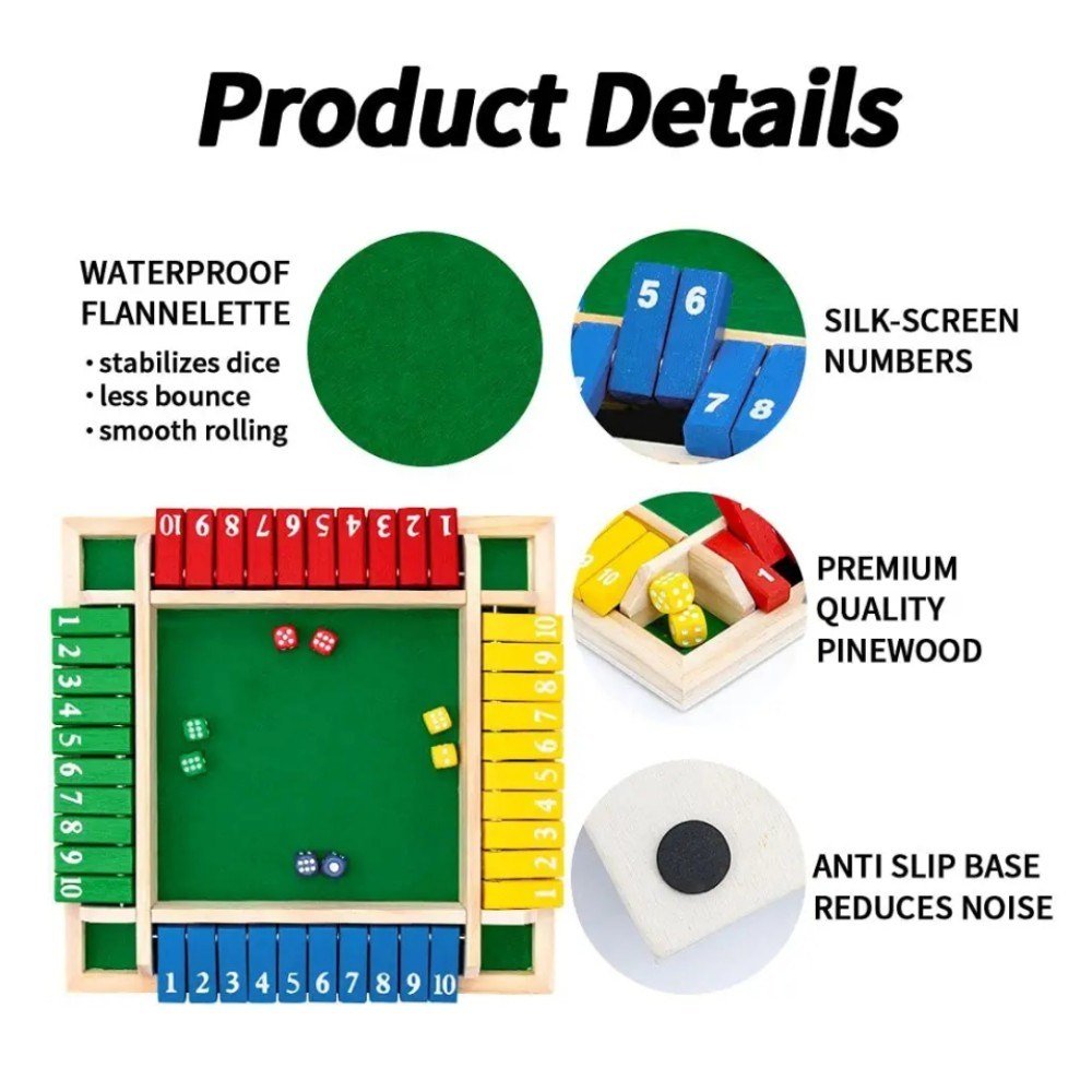 Home > Shut The Box Game; Wooden Board Dice Games For Adults And Kids 2-4 Player Family Classics Tabletop Version Games For Classroom; Party; Home